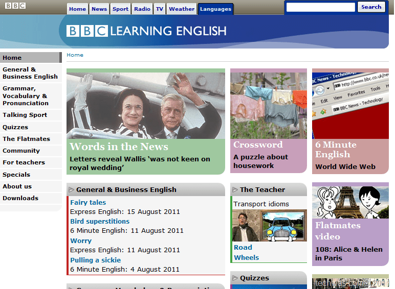 Here one has to choose the grade, there are a number of English Tutorial exercises. One can learn by examples, based on news, of the daily life. Here one can learn the English vocabulary, the examples of correct usage of words and phrases, through examples, by hearing and watching the audio video.