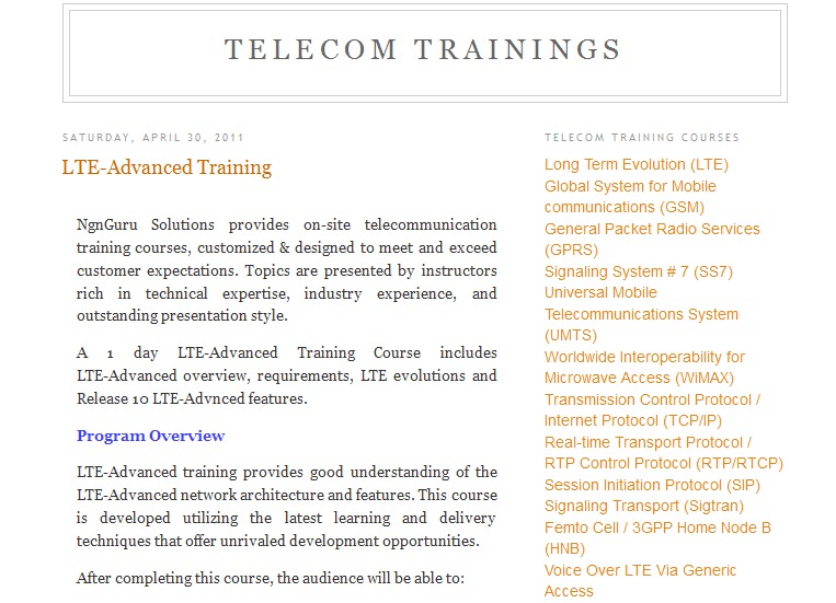 If you see in the web for Telecom trainings, this website will be reached in top page of Google due to its high reputation from 1992. One of the best websites for Telecom trainings